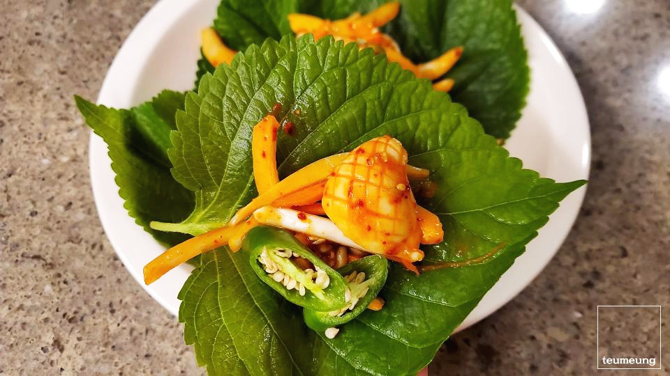 깻잎에 싸서 먹으면 더 맛있어요