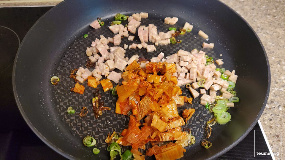 햄 김치를 다 넣고 볶아주세요