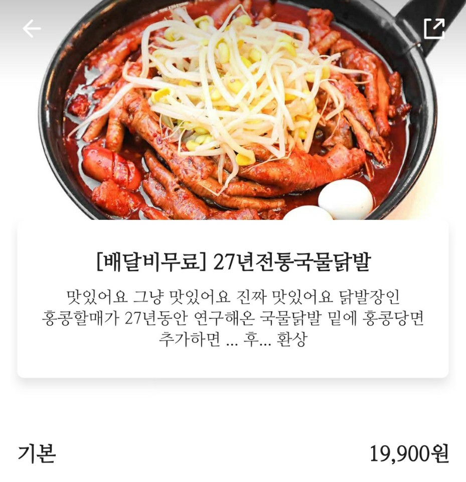 홍콩할매 불닭발 국물 닭발 ( 19,900 )