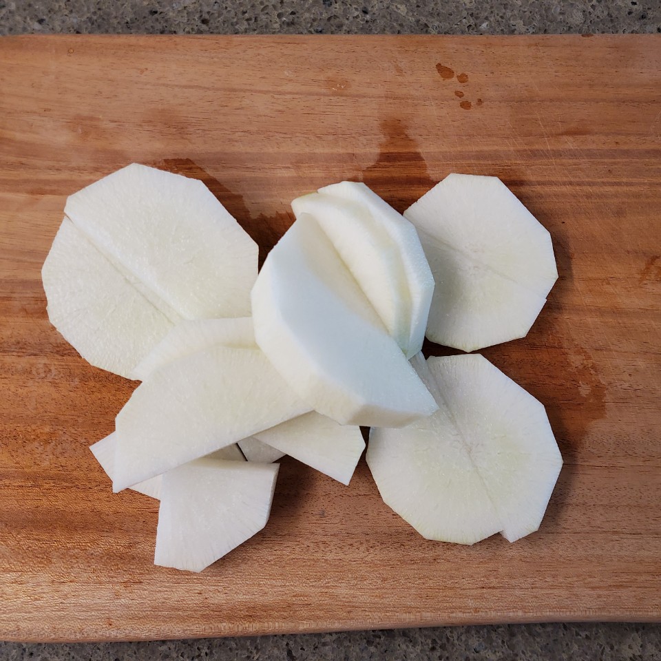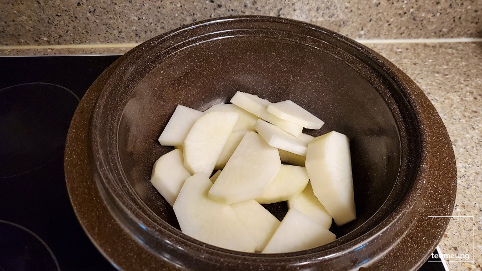 먼저 무를 맨 밑에 깔아줄게요