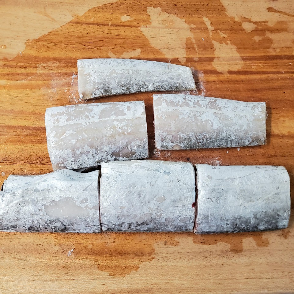 갈치는 토막 내서 안에 내장을 빼줬어요