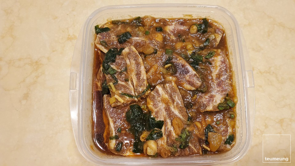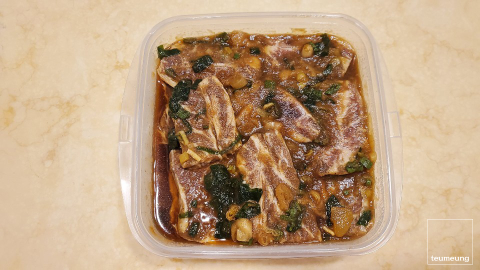 언니네 갔다 줄 갈비는 자르지 않고 재워뒀고요