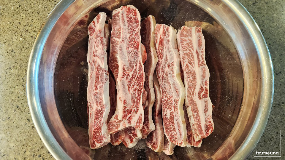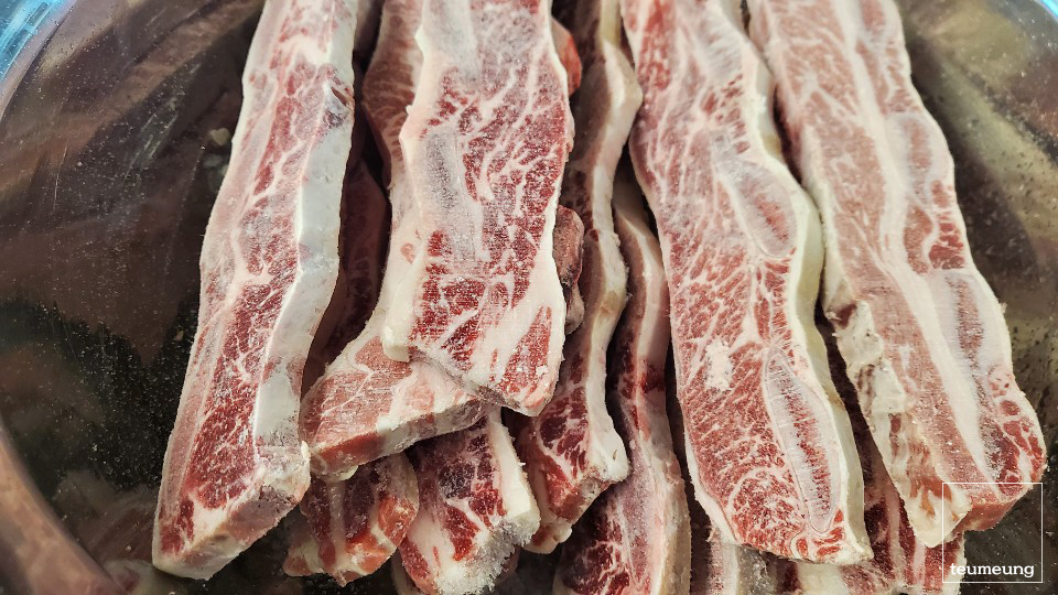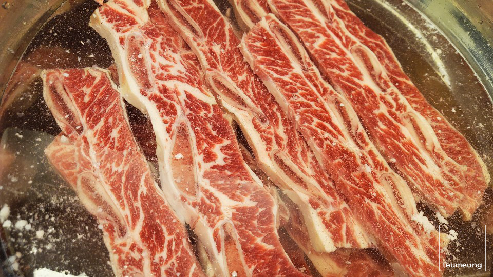 핏물을 빼주지 않으면 양념이 고기에 잘 안배인다고 하더라고요