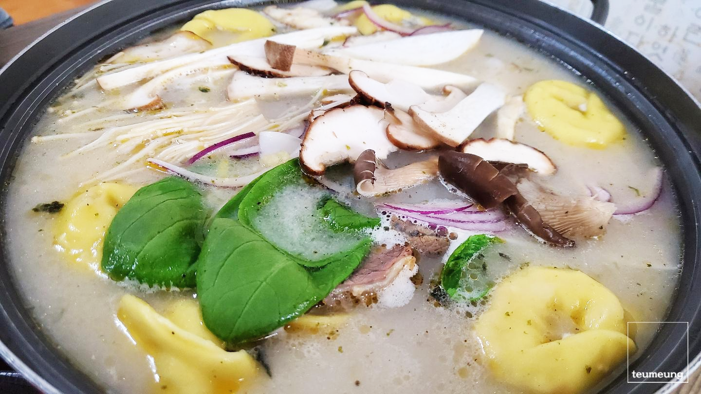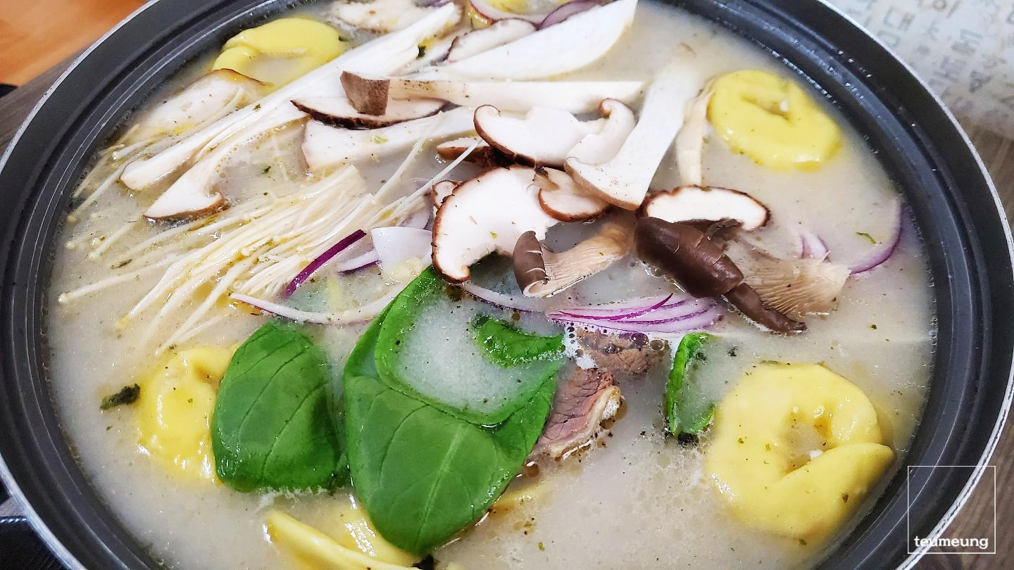 기본적으로 손만두 버섯전골이 세팅되더라구요.