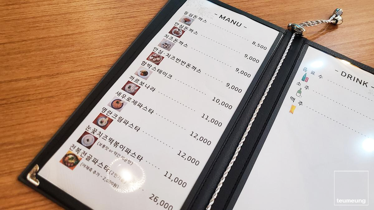 메뉴는 돈까스 파스타 등 심플했답니다.