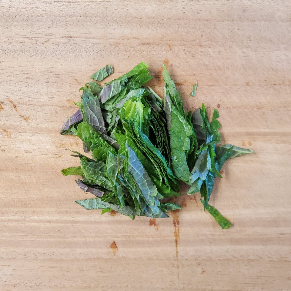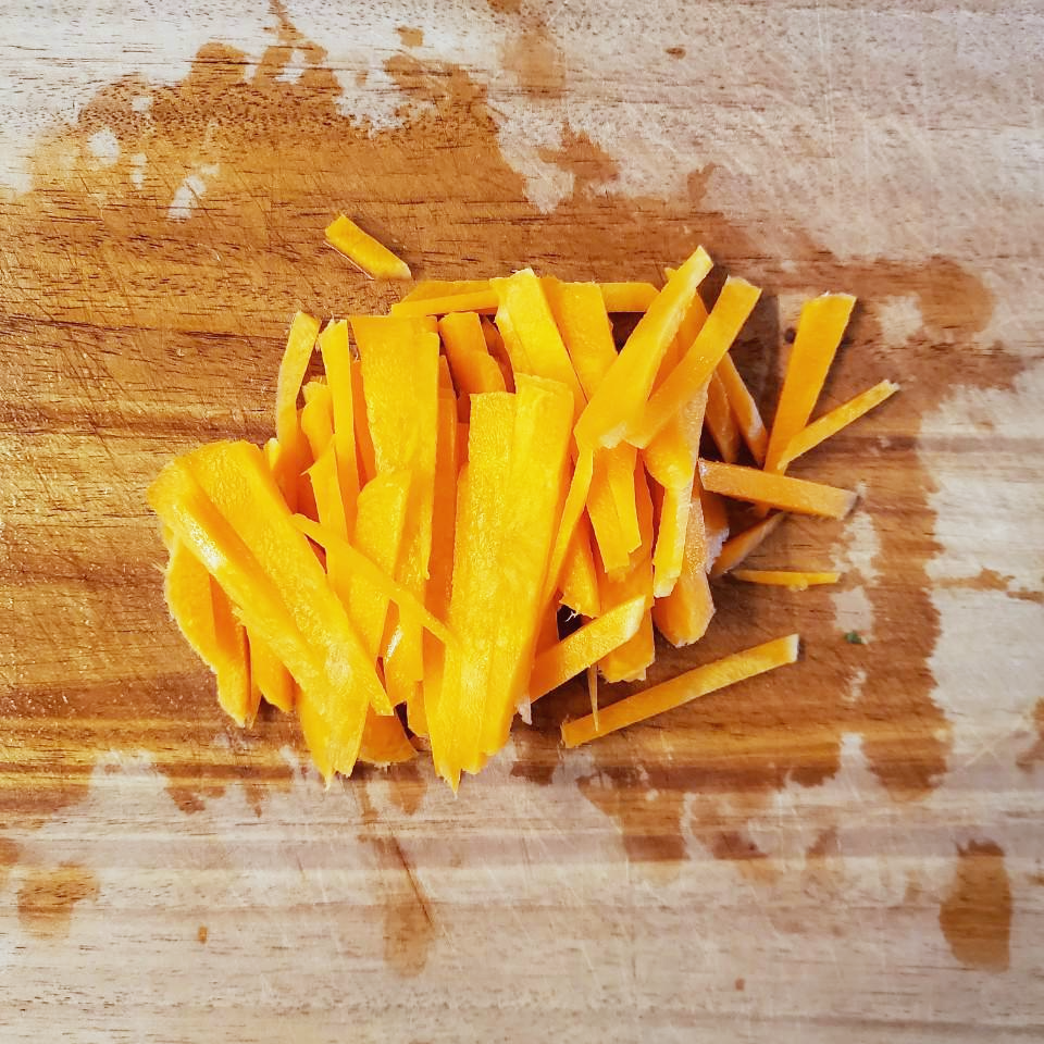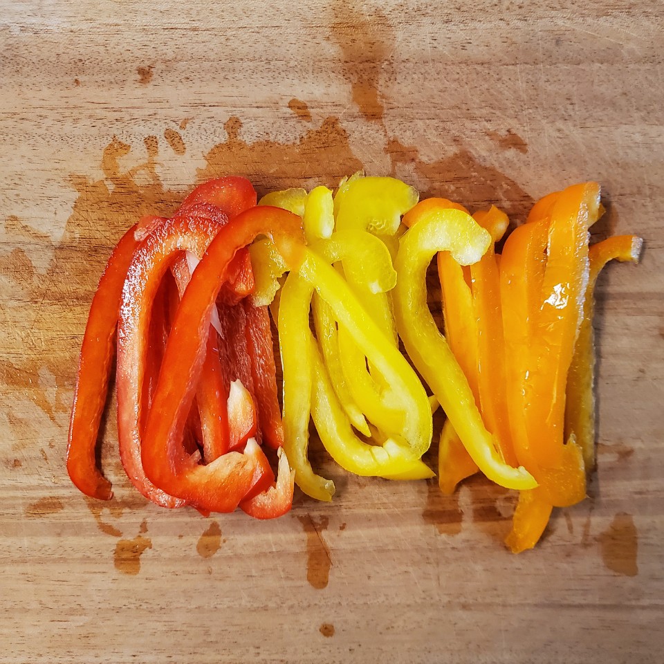 깻잎과 파프리카! 얇게 썰어줍니다.