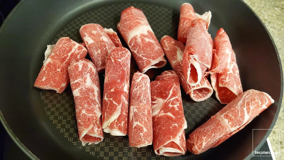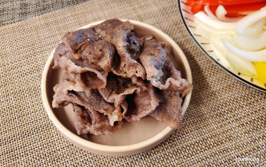 겉모습에 고기가 나오는 게 좋으시면 고기를 밑에 깔고 만들어주세요.
