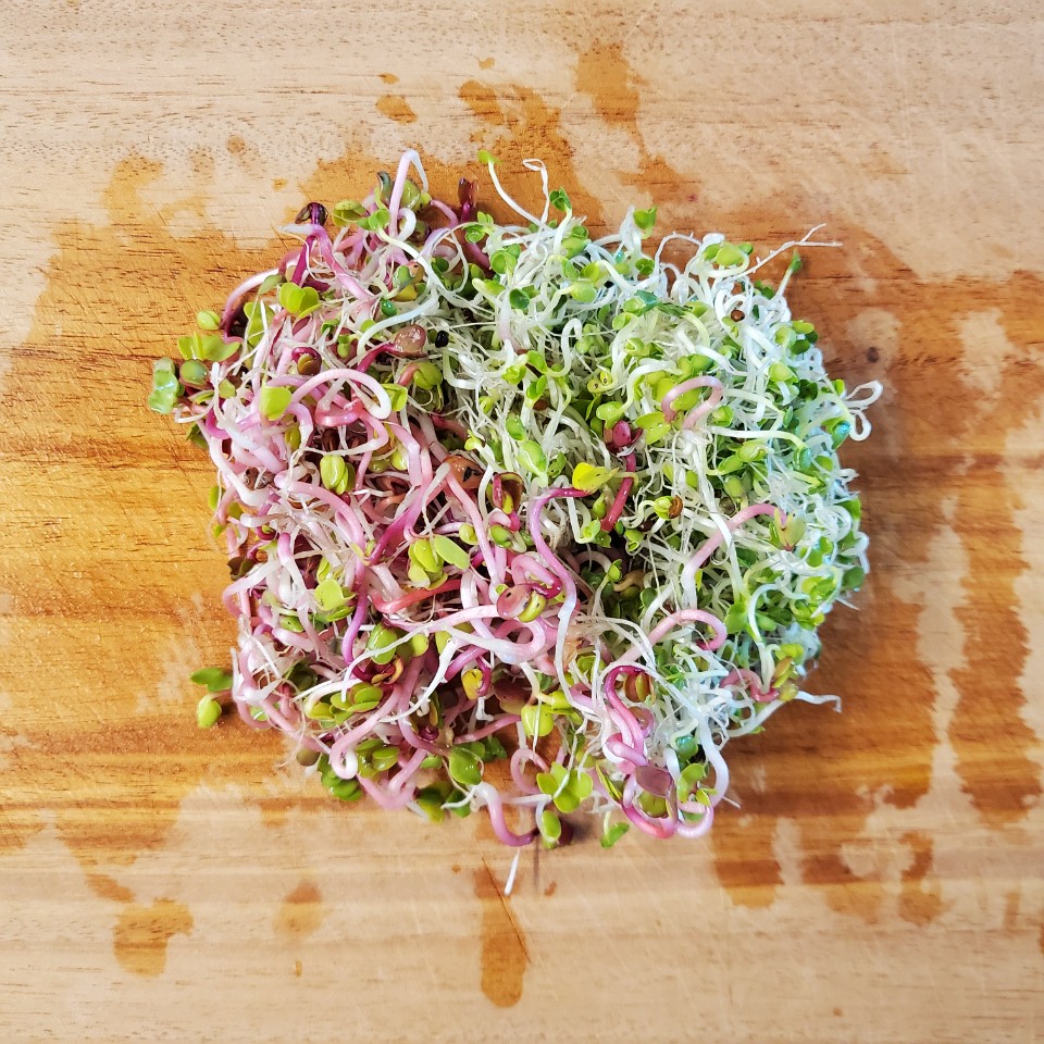 어린 새싹은 씻어주고 당근은 작게 채 썰어줬어요.