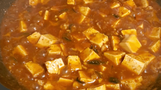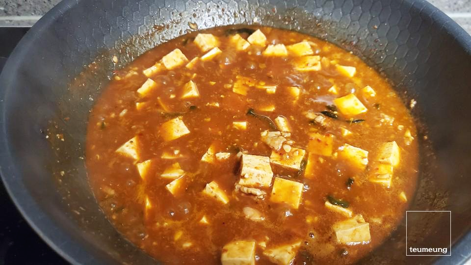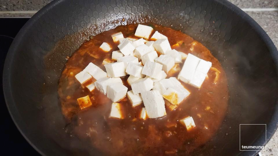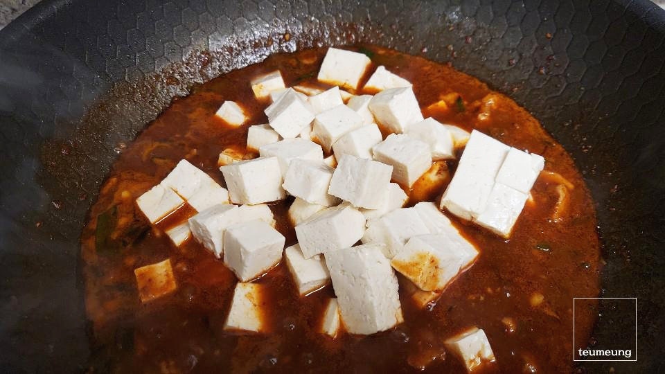 이제 하얀 두부를 넣고 끓여주면 마파두부 만들기 끝입니다.