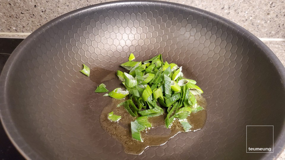 준비는 다 끝났으니 기름을 두르고 파 기름을 내줍니다.
