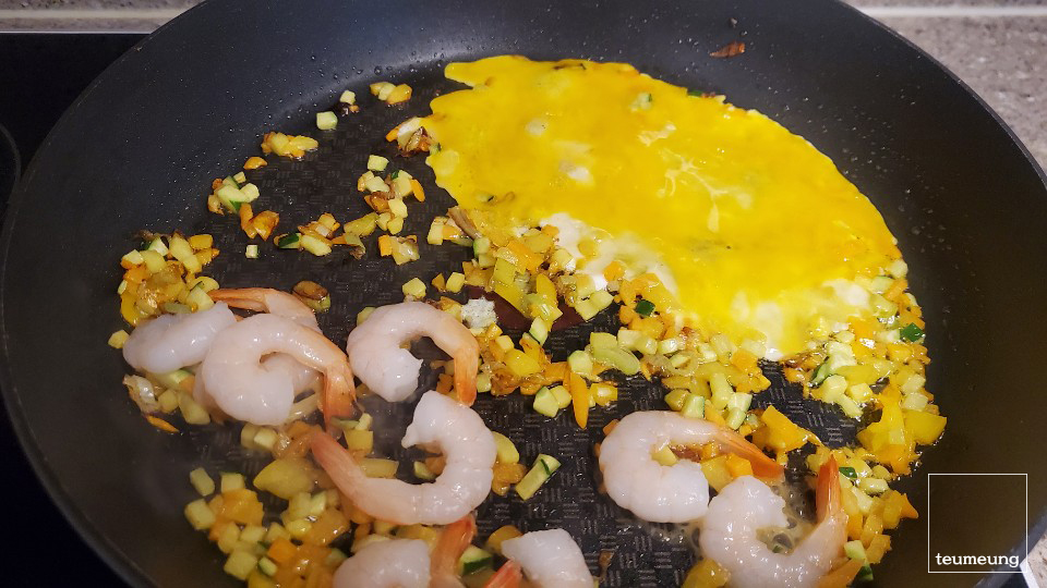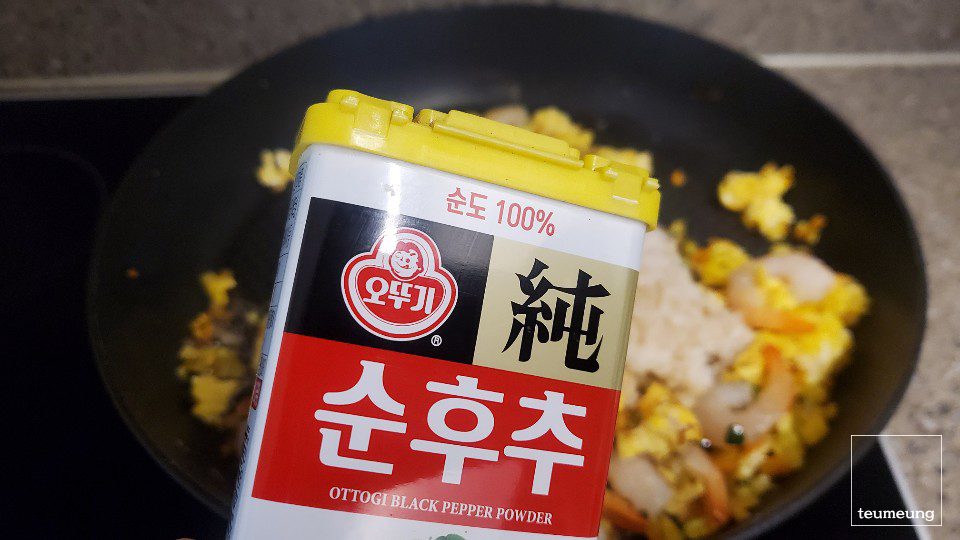 풀어둔 계란에 소금으로 간을 해준 상태로 많이는 안 넣으셔도 돼요.