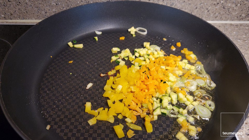 파 기름이 어느 정도 나오면 야채를 넣고 달달 볶아주세요. ~ ^^