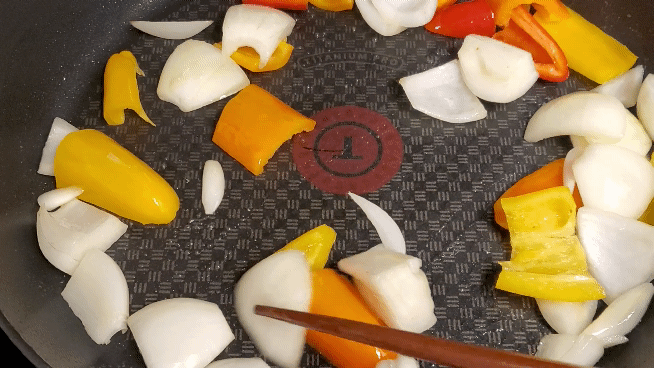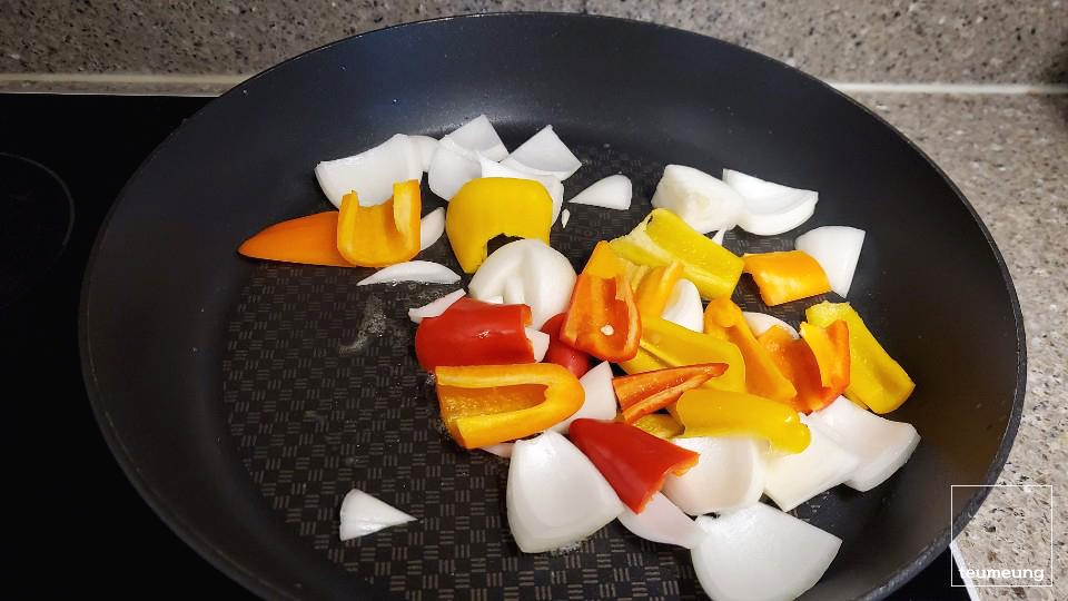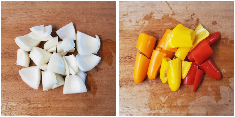 저는 양파와 파프리카를 먹기 좋은 크기로 잘라서 준비했습니다.