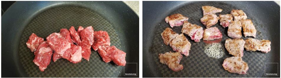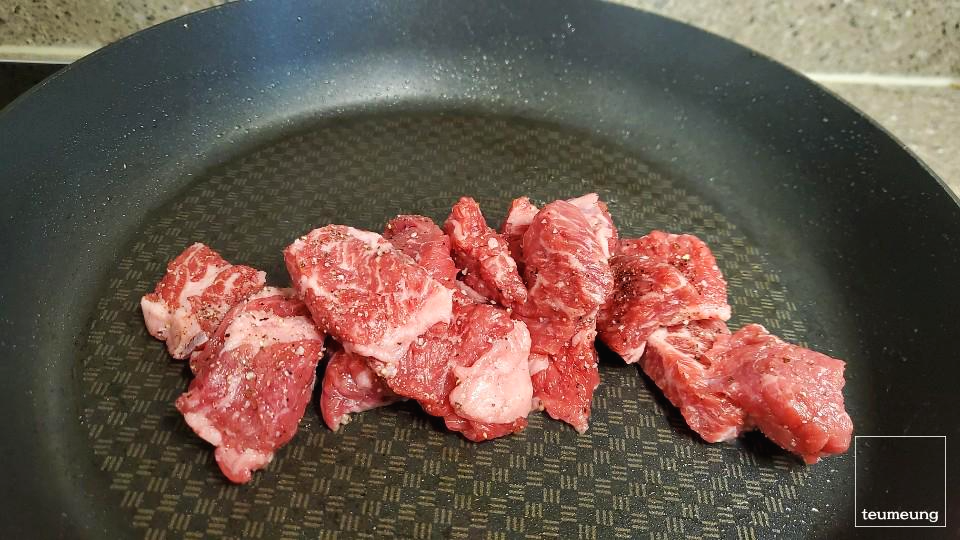 소고기에 소금과 후추로 간을 해서 딱 알맞고