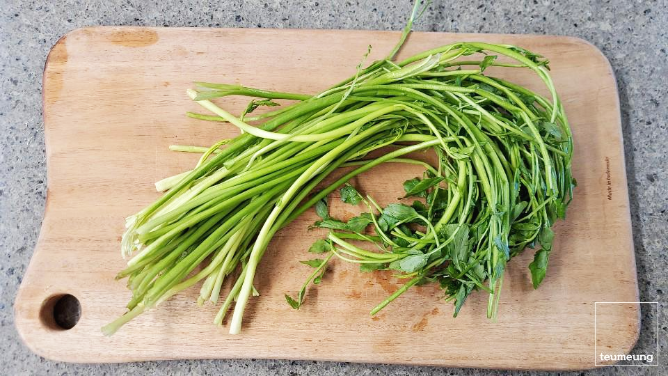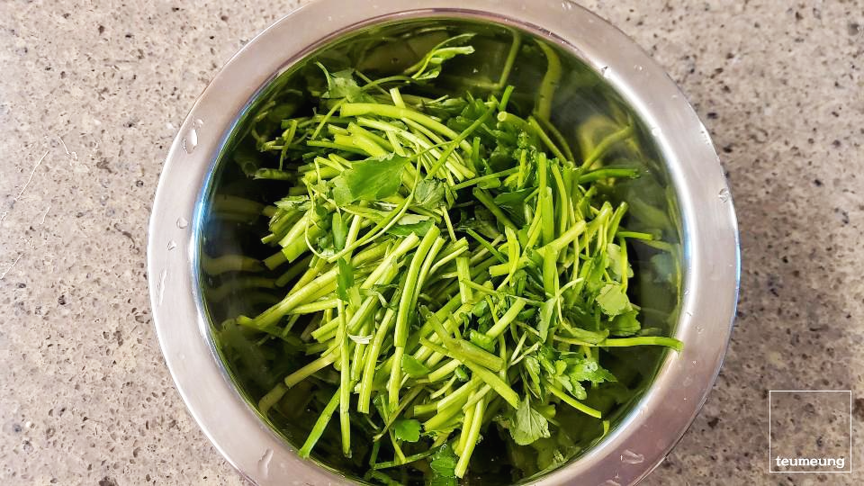 미나리 손질! 잎부분은 시든 부분만 떼어주고요.