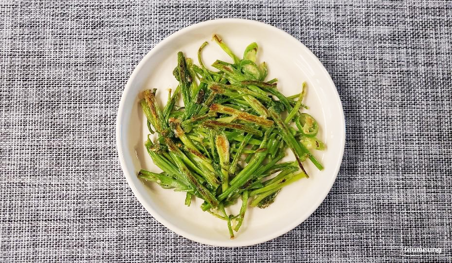 부침가루를 많이 넣지 않으니 미나리 그대로 구워낸 것 같죠?
