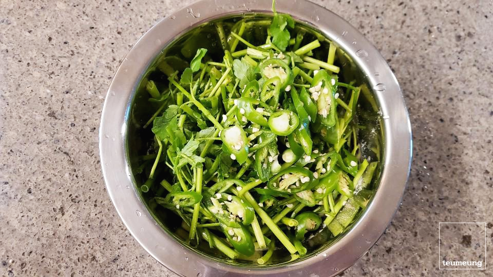 그래야 미나리 식감도 더 살아있는 느낌적인 느낌 ㅎㅎ ~