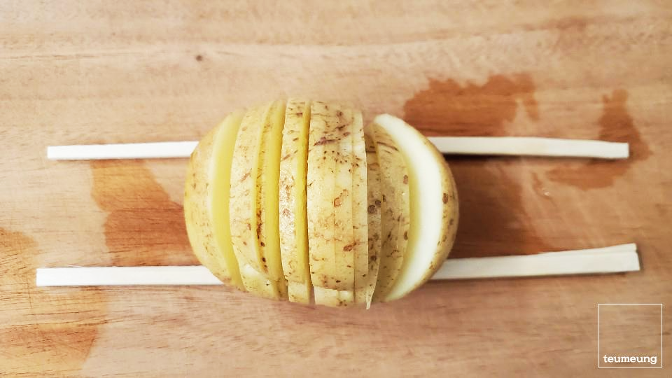 감자 틈 사이로 꼼꼼하게 발라줄수록 좋답니다. + 얇게 썰수록
