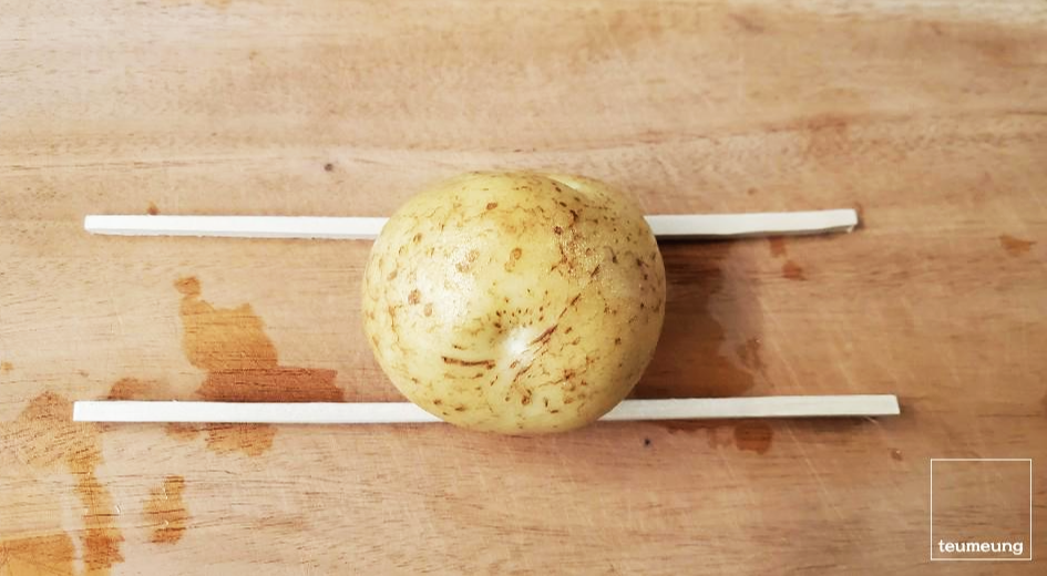 감자 밑이 너무 둥글다면 썰다가 아래까지 썰려서 조각나기 때문에
