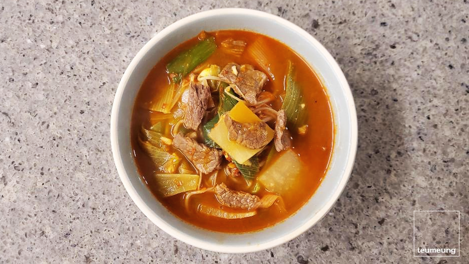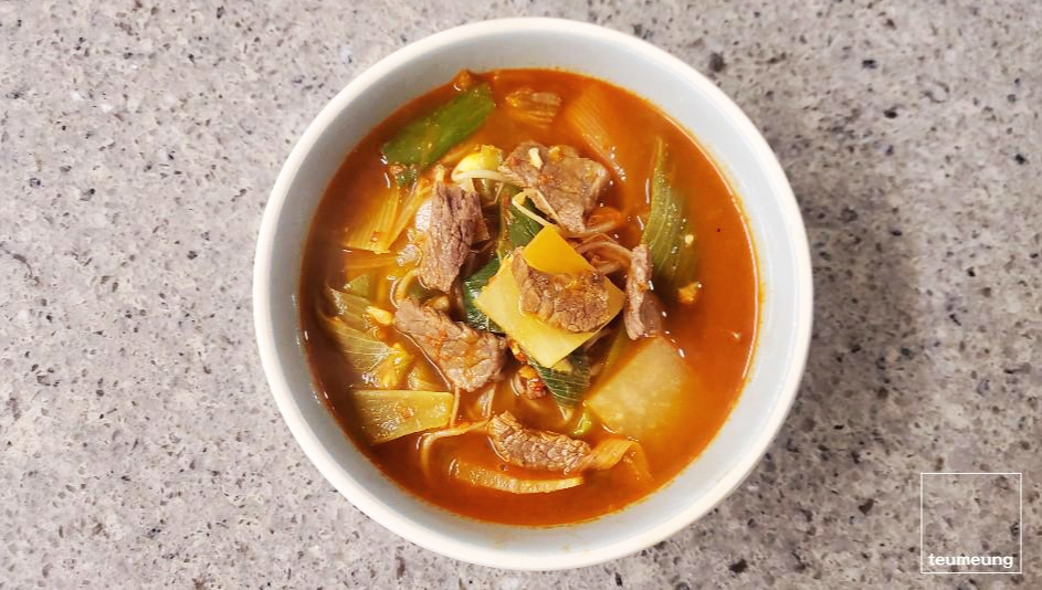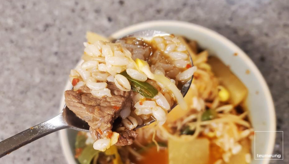 재료도 소고기에 무 콩나물 파 듬뿍 들어가니