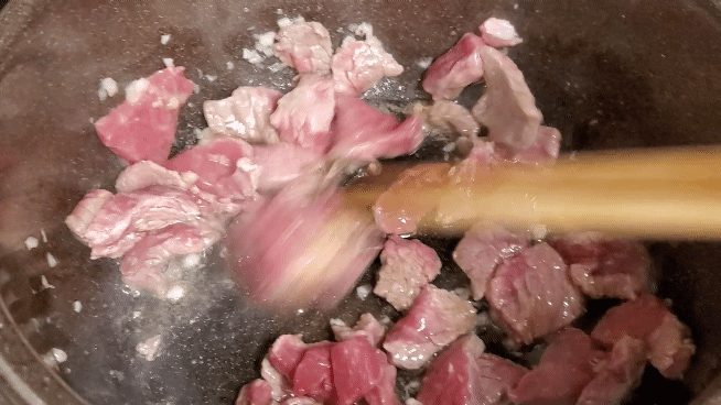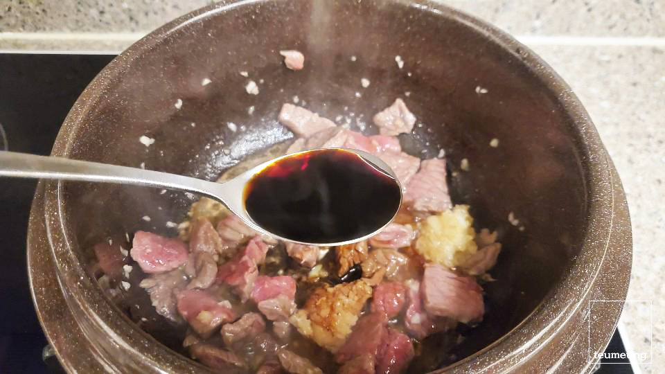 소고기와 다진 마늘을 볶아줄 때